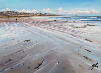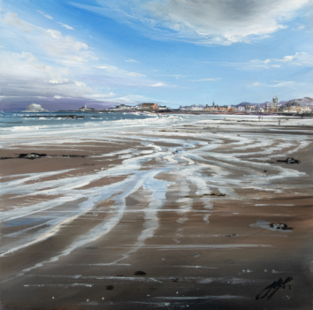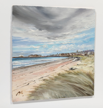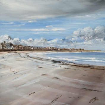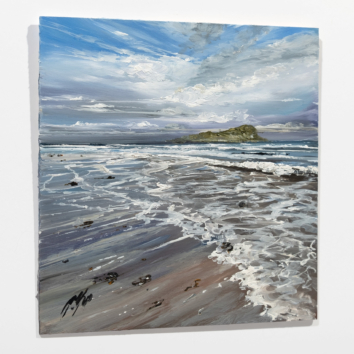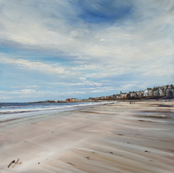 Sand and sea surrounded by vast, shifting skies are Allison’s main inspiration. Her paintings are simply of places that make her happy.