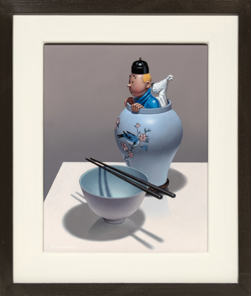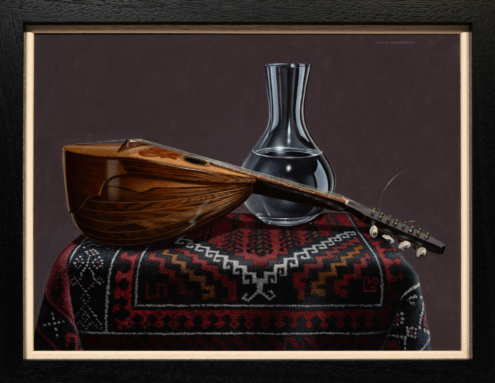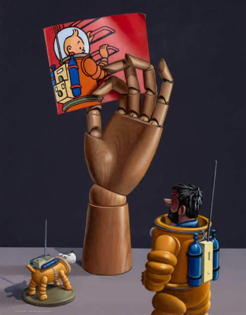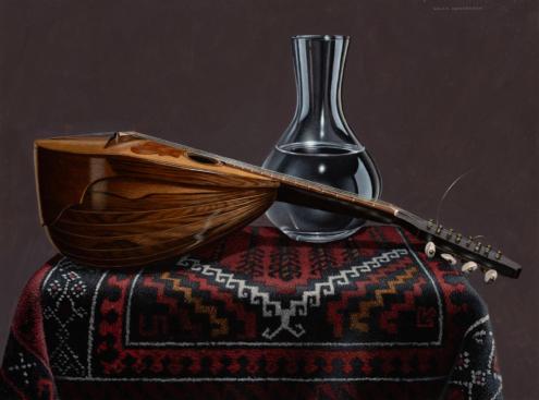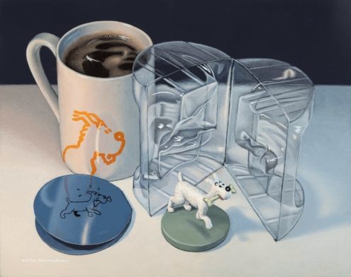 Brian Henderson is a Scottish painter, based in Edinburgh, Scotland. While studying at Edinburgh College of Art in the seventies, the prevailing fashion was Abstract Expressionism. For Brian however, realism was and continues to be far more appealing. His method is incredibly meticulous, from the selection of objects for each tableau to the tiny brushes he uses. It is a lengthy process which necessitates the quick-drying properties of acrylic paint. From the darkest tones to the lightest, he crosshatches very thin layers, maintaining a unique control over the colours and textures. This results in paintings that have a rare ability to leave viewers in awe of the skill involved yet also charmed and amused by Brian’s willingness to juxtapose everything from crystal to kitsch.