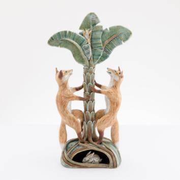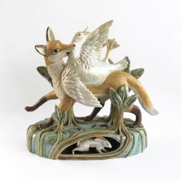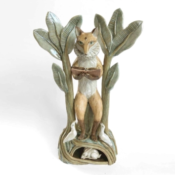 Pursuing her interest in mythology and in particular The Beast Epic of Reynard the Fox, she weaves these various strands of inspiration into her own style of figurative ceramics.