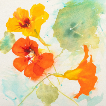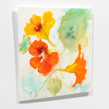 Known for her watercolours of flowers and plants, Jenny Matthews’ approach to the medium combines her interest in detailed work with abstract effects created by water and pigments. Spontaneity and colour are central themes, with an invocation of vivacity and joy.