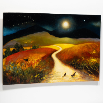 The rich and varied landscapes of the Scottish Borders provide more than enough inspiration for Lesley’s work. From her intricate renderings of wildlife to the expressive, almost illustrative depictions of countryside dwellings, there is an unbridled sense of wonder and joy in Lesley’s work.