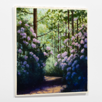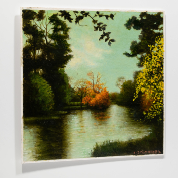 Often painting with oil on robust wooden panels, Louis has a painstakingly detailed approach. He creates paintings that are carefully composed and painted over many weeks. He often references his own drawings, photographs and memories. The resulting works can feel both unsettling and reassuring. And at the same time; in shining an atmospheric light on familiar locales, they invite us to fully appreciate the essential tranquillity of the spaces we inhabit.