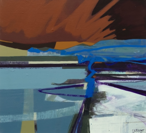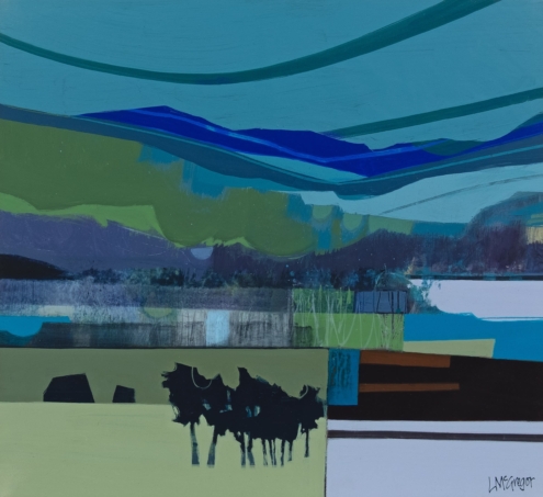 Drawing on memories of the landscape as inspiration, Lynn breaks her subject geometric blocks of colour and texture. She allows herself to be informed by the paint and works intuitively, to balance all the elements in her work. Her combination of a considered tonal palette with strong forms and tactile mark-making, creates a unique approach to the Scottish landscape.