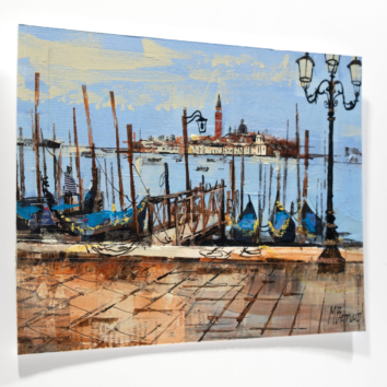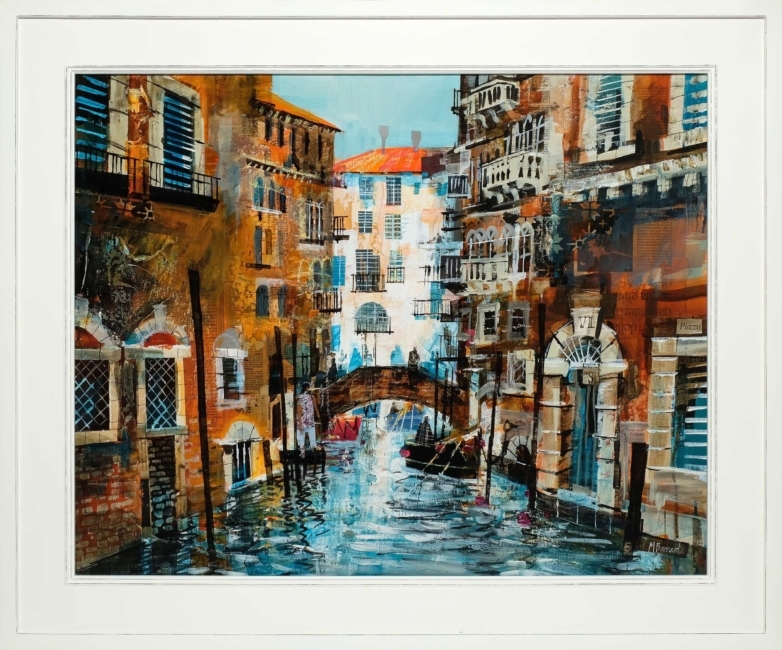 Mike enjoys experimenting with a variety of media and techniques. He is often incorporating collage and acrylics. As a base to his paintings, collage has allowed him to create abstract structures that can often turn into the ever elusive ’happy accidents’. This is when an array of seemingly disparate textures, colours and shapes suddenly fall into place. He knows a composition is complete when there is a pleasing pattern, unified by a harmonious palette but with abstract elements to retain an atmosphere of spontaneity, freshness and freedom.
