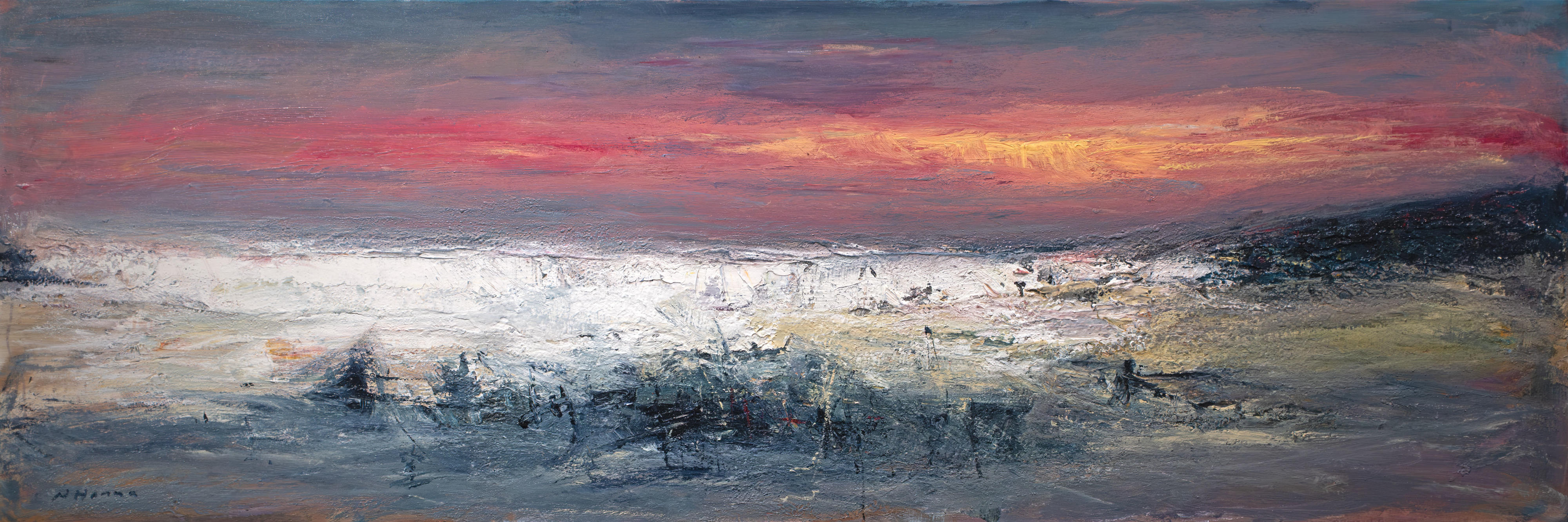 Nael Hanna was born in Nineveh, Northern Iraq. As a young man, he served in the Iran – Iraq war. This was before being awarded a scholarship to study art in Britain. Following on from a foundation course in England Nael completed a degree in Fine Art at Duncan of Jordanstone College of Art in Dundee. This was followed by a residency at Hospitalfield in Arbroath where Nael fell in love with the Scottish landscape and coastline. In particular, the drama of the changing weather.