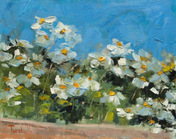 For Nancy there must always be a reason for choosing a particular subject; something that sparks the imagination, something that only an artist’s eye would observe. The challenge is then to capture that feeling with marks on a canvas, subtle colour combinations and the texture of paint. Nancy works in oils quickly and instinctively using knives, brushes and rags. This allows her to achieve a freshness and impression rather than an exact representation.