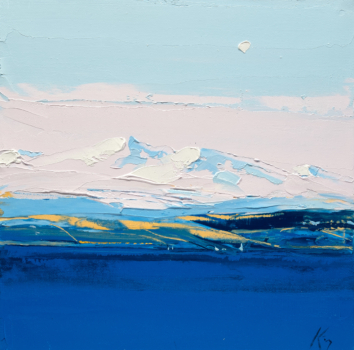 The weathered landscape of The Scottish Borders, Kintyre, The Clyde Valley and the vast panorama of land and sky dominated by Tinto Hill are a constant source of ideas and inspiration for Peter. He has developed his painting style with a broad range of motifs which he constantly returns to and reinterprets, focusing on aspects of changing light and colour.