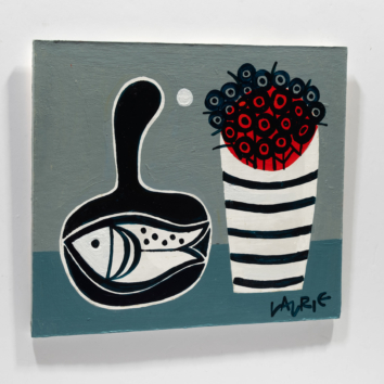 Simon Laurie RSW RGI is a contemporary Scottish landscape and still life artist. His paintings are characterised by references to Scottish life and society, incorporating fish, boats, religious symbols and everyday items. These objects are arranged upon a rich textural ground created by the application of multiple layers of acrylic paint. He has worked with acrylic paint for almost 30 years, developing his own individual style and fundamental visual language.