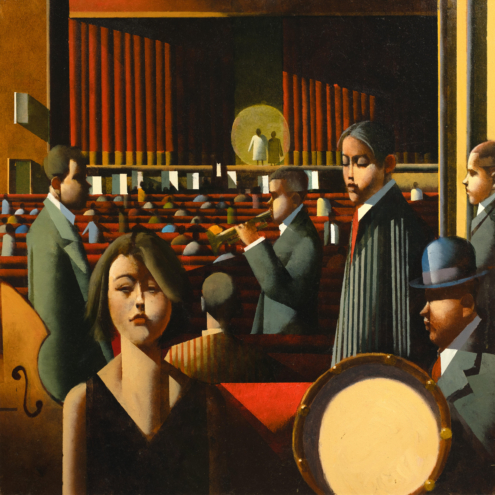 Inspired by atmospheric locations and the individuals that inhabit them, Stephen’s work seems to exist in another time and place. Best known for his scenes of race courses, beaches, fairgrounds and theatres, his work casts a unique light on these bustling locales. He often highlights individuals caught in moments of contemplation, introspection and even melancholy.