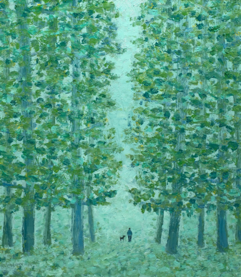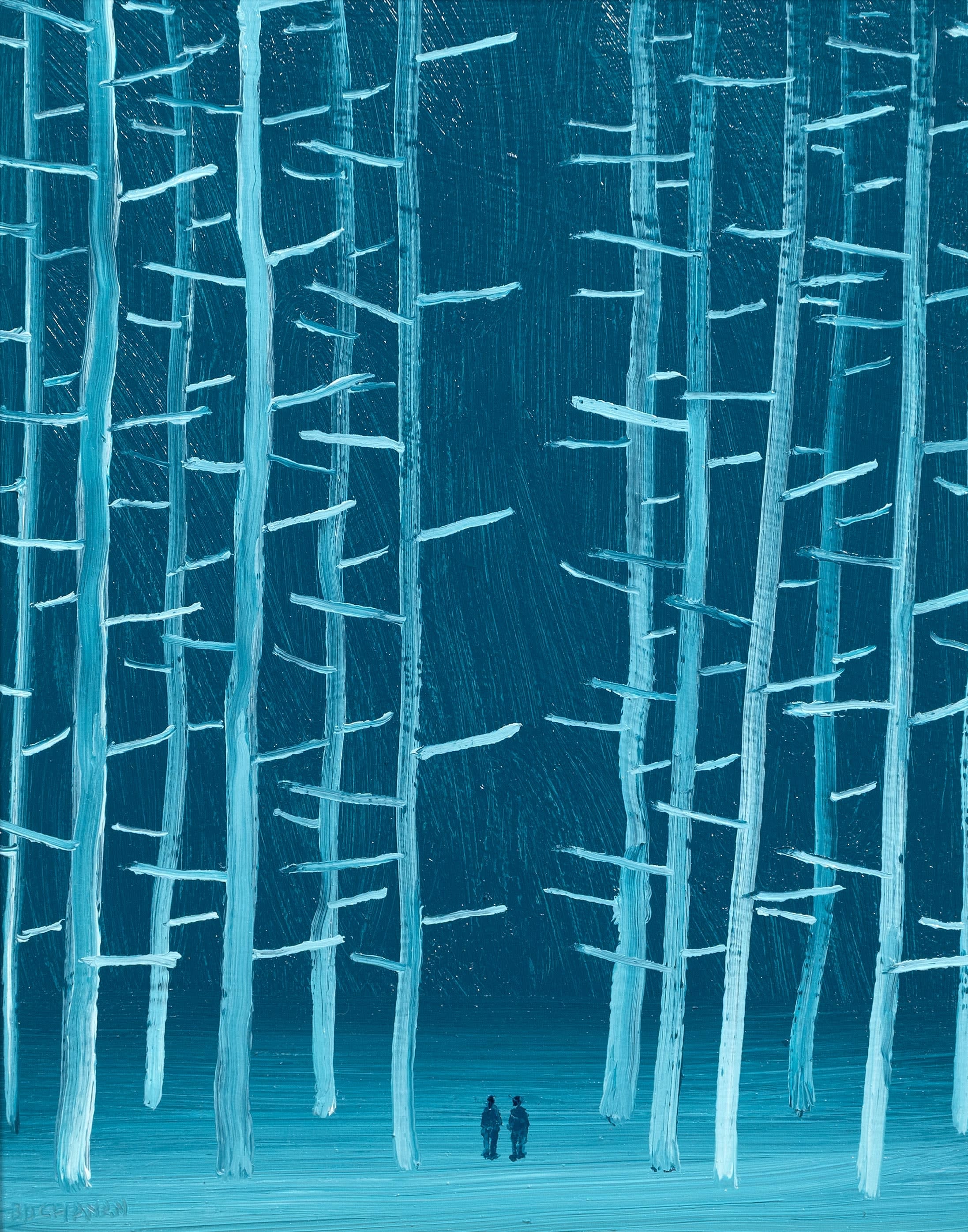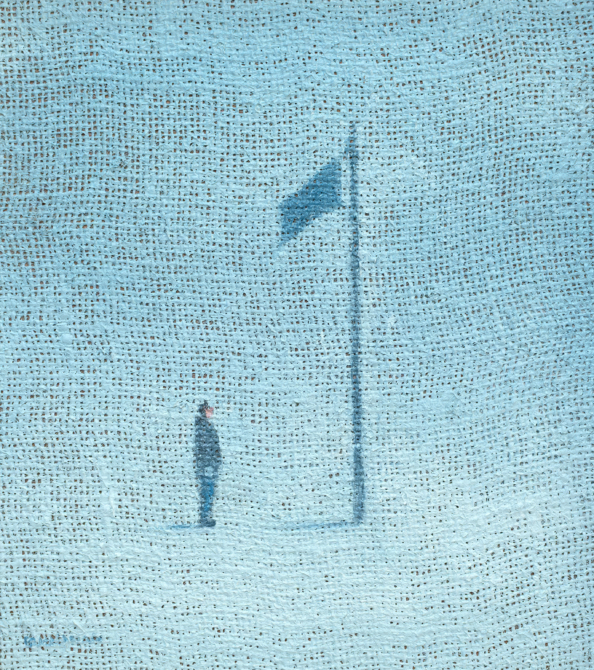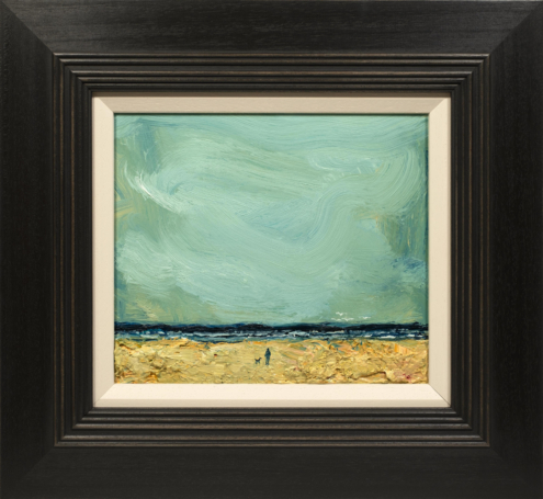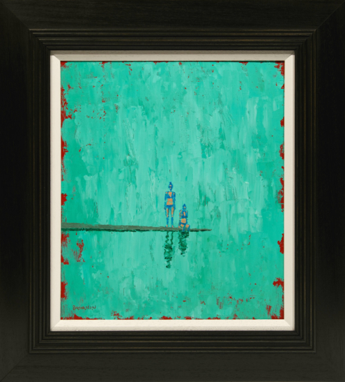Buchanan creates a world of peace and refuge away from the day to day of the outside world. His paintings depict mostly single figures and pairs and all share an enviable meditative state. The figures are often involved in an activity beyond the canvas and the viewer – such as gazing out to sea or at the stars, or daydreaming. He draws inspiration from his own childhood memories and experiences, as well as more current day to day life and the environment and landscapes that surround him.