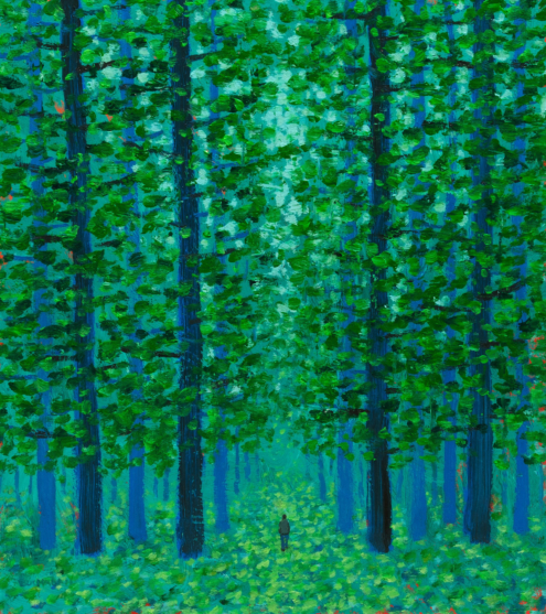 Stuart generally works in the traditional medium of oils. His paintings are representational, with figures set in richly textured, colourful ambiguous landscapes. His work depicts images of figures, usually imagined and anonymous, in painterly landscapes. Stuart’s paintings are easily identifiable. His art work display a recurring theme of solitude. This is not to suggest his paintings are lonely but rather a celebration of peace and serenity.