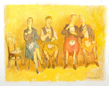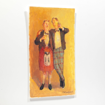 Working from his home studio in Pittenweem, Fife, Tim’s inspiration comes from his observation of people and how they interact with one another. Best known for his country dancing scenes filled with mirth and merriment, he has a unique way of tapping into the vulnerabilities of his characters, utilising a wry sense of humour to highlight their foibles as well as their virtues.