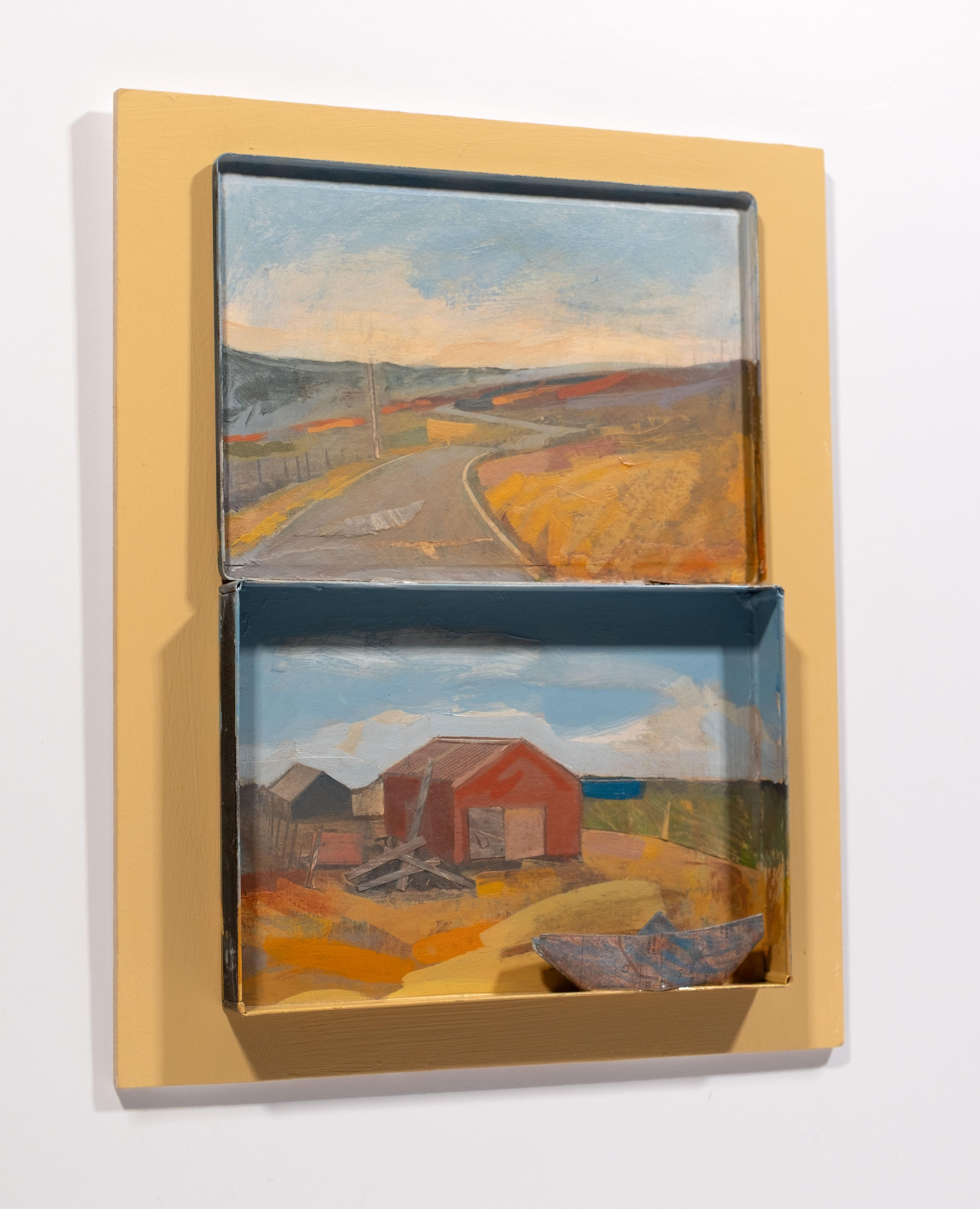 Acrylic, Collage in Vintage Cigarette Tin Size: 20 x 26 cm 20 26