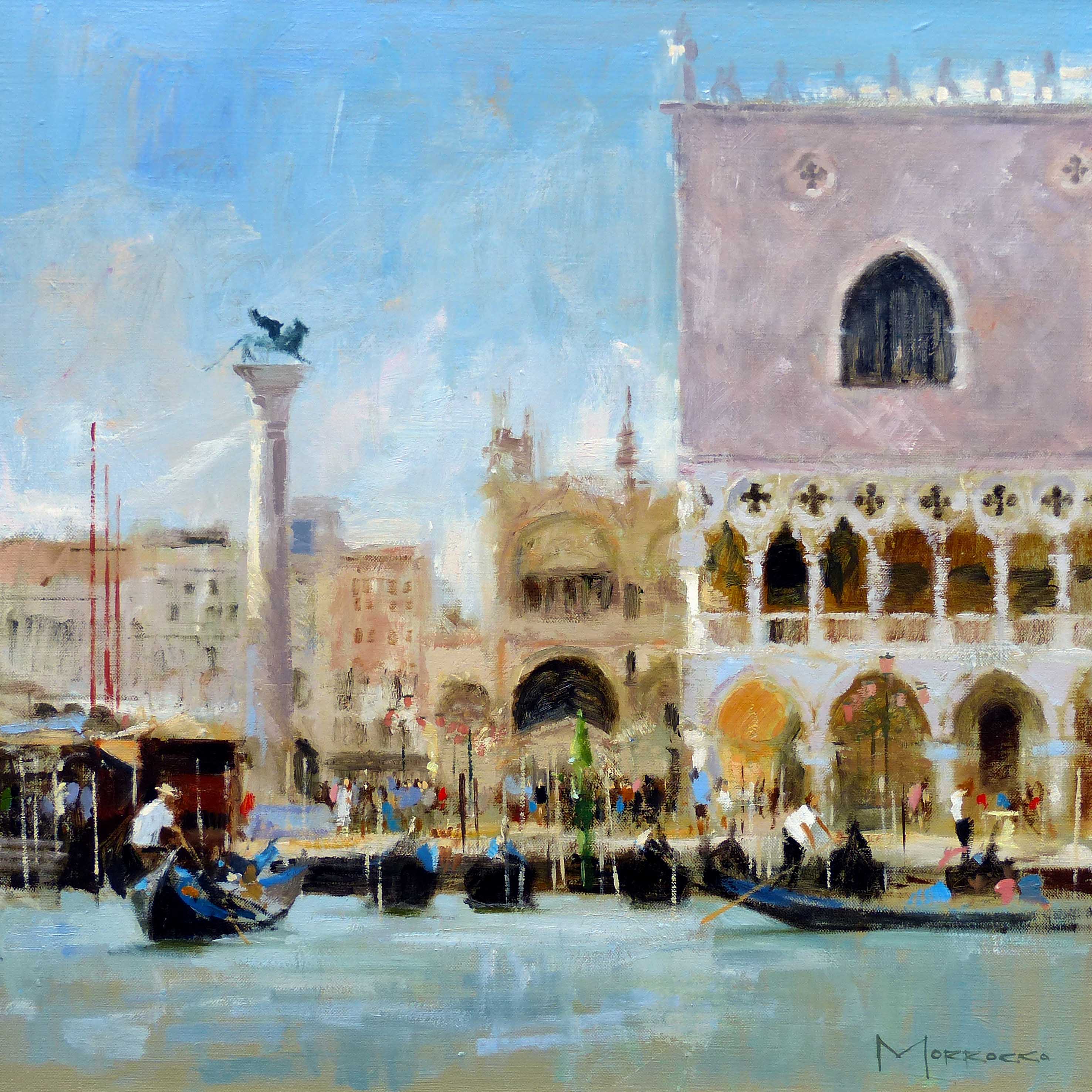 Jack’s work might most accurately be described as impressionist, in that he is always striving to portray an impression of something seen, whether an effect of light, shade or form, or perhaps more obliquely a sensation or feeling of place. The subject can be quite simple: the bend in a canal, a modest street café or a morning market but it is the effect of the light falling and reflecting that becomes the real subject.