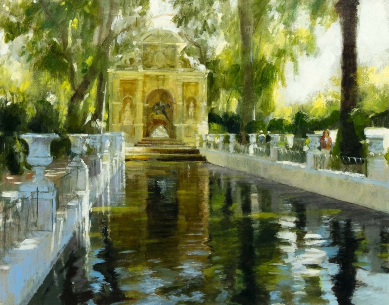 Anyone familiar with Jack Morrocco’s work will know him as an artist who seeks out the light, finding inspiration where generations of artists have found inspiration before him; in the South of France, Spain and Italy. Light is Jack’s pictorial language, the means through which he translates the scenes before him into paintings that resonate for the viewer. These are paintings which speak of light effects – the dappled light through plane trees and the luminous shafts of light between buildings – but they also awaken feelings and memories, evoking that sense of really being there, and calling upon all of our senses at once to recall or imagine the essence of a place.